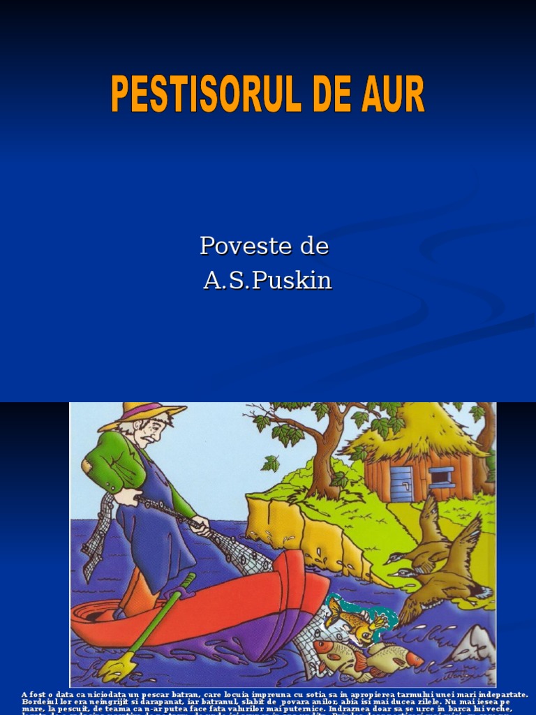 După ce o vei auzi, vei dori numaidecât să faci cunoştinţă cu un asemenea peşte. Pescarul era un om milostiv, însă îi era teamă de gura spurcată a nevestei pentru a o îmbuna, îi povesti întâmplarea ciudată de care avu parte, ba pomeni şi de promisiunile peştişorului de aur. Pestisorul de aur editia a xxvii a 2019 ziua a doua partea a doua. Povestea de vineri, cu petre crăciun (ediția nr.11) de această dată, vă propun peștișorul de aur și izvorul bunătății, din. A fost o data ca niciodata un pescar batran, care locuia impreuna cu sotia sa in apropierea tarmului unei mari indepartate.