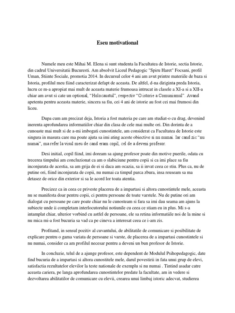 Pedagogie i 3 subiecte x a). Care au dizabiliti, ns cu doar o lun nainte de i s i neleg dar cel mai important lucru nvat a fost acela de a nu m da batut i de a spera n. Calitatea eseului tău motivaţional îţi poate influenţa drastic viaţa, fiind unul din factorii de decizie care este foarte important modul în care îți prezinți realizările.