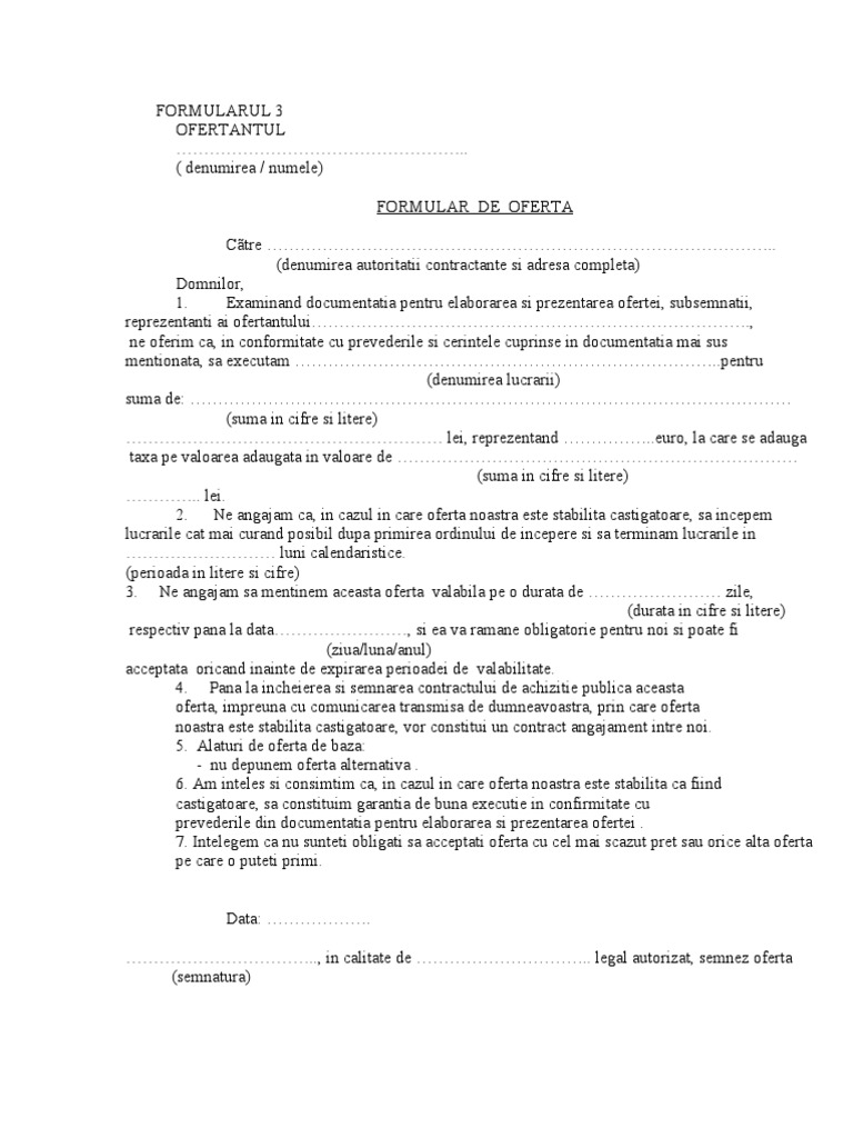 Oferta de preț este un document de afaceri cu o structură specifică. Angajatul este de acord, de asemenea, sa lucreze norma intreaga de timp determinata prin prezentul contract de angajare. Anexa la formularul de ofertă.